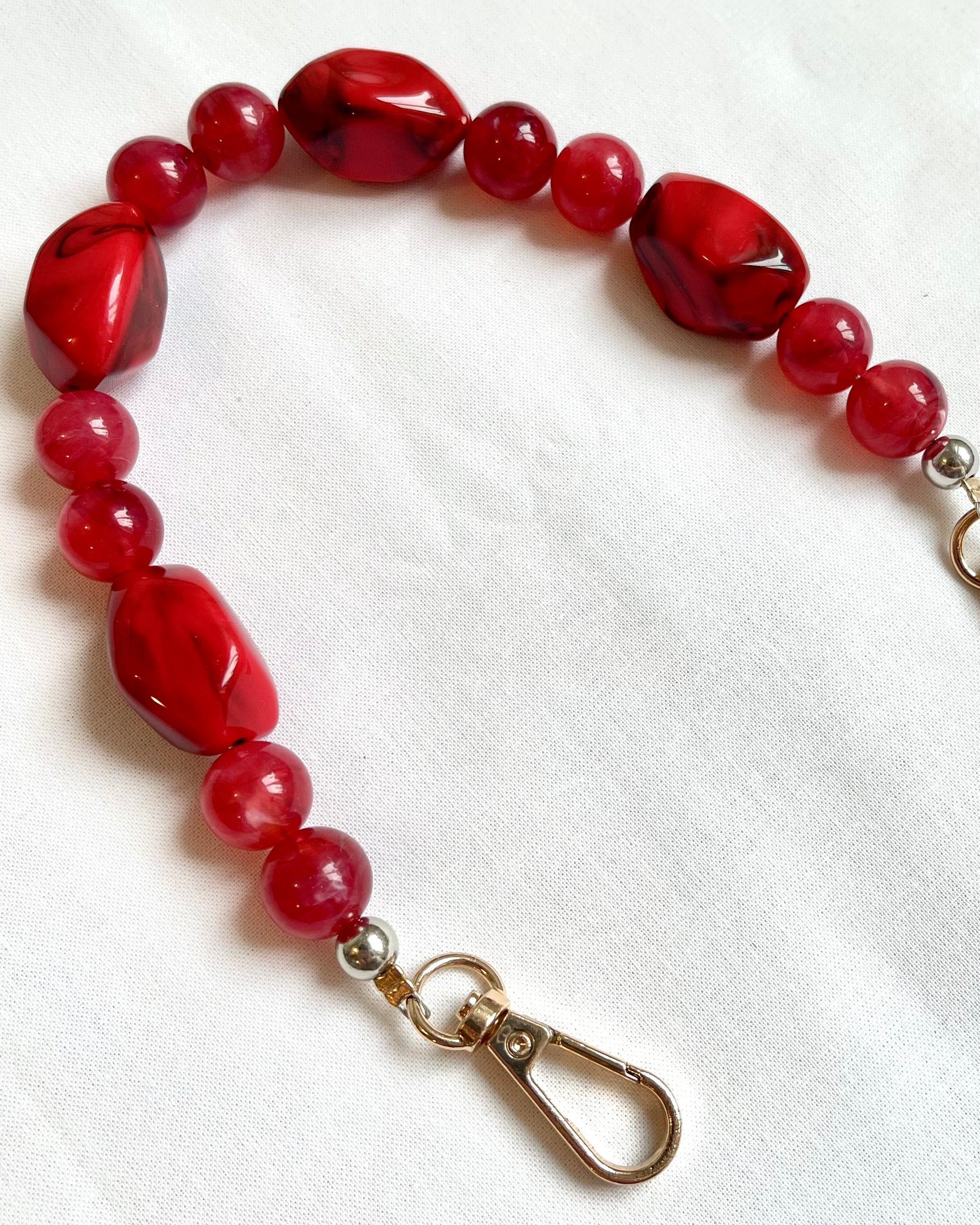 These decorative bag chains are made with glossy resin stone beads that create a bold, sculptural look. The chunky beads add weight and character, instantly dressing up handmade clutches, crochet bags, and small handbags.
