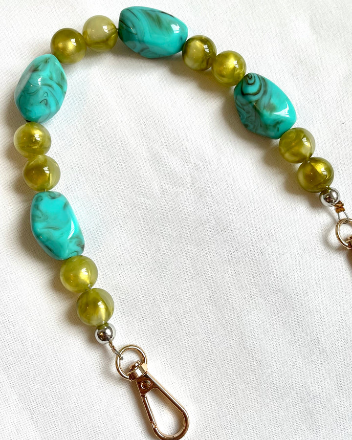These decorative bag chains are made with glossy resin stone beads that create a bold, sculptural look. The chunky beads add weight and character, instantly dressing up handmade clutches, crochet bags, and small handbags.