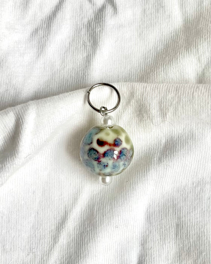 Myk, flekkete og stille vanedannende. Blåbær Matcha kombinerer kremete grønne toner med blekkblå og subtile bærflekker, som en perfekt hellet latte med en vri. Hver glassperle har sin egen unike marmorering, avsluttet med en liten perledetalj for et snev av eleganse.