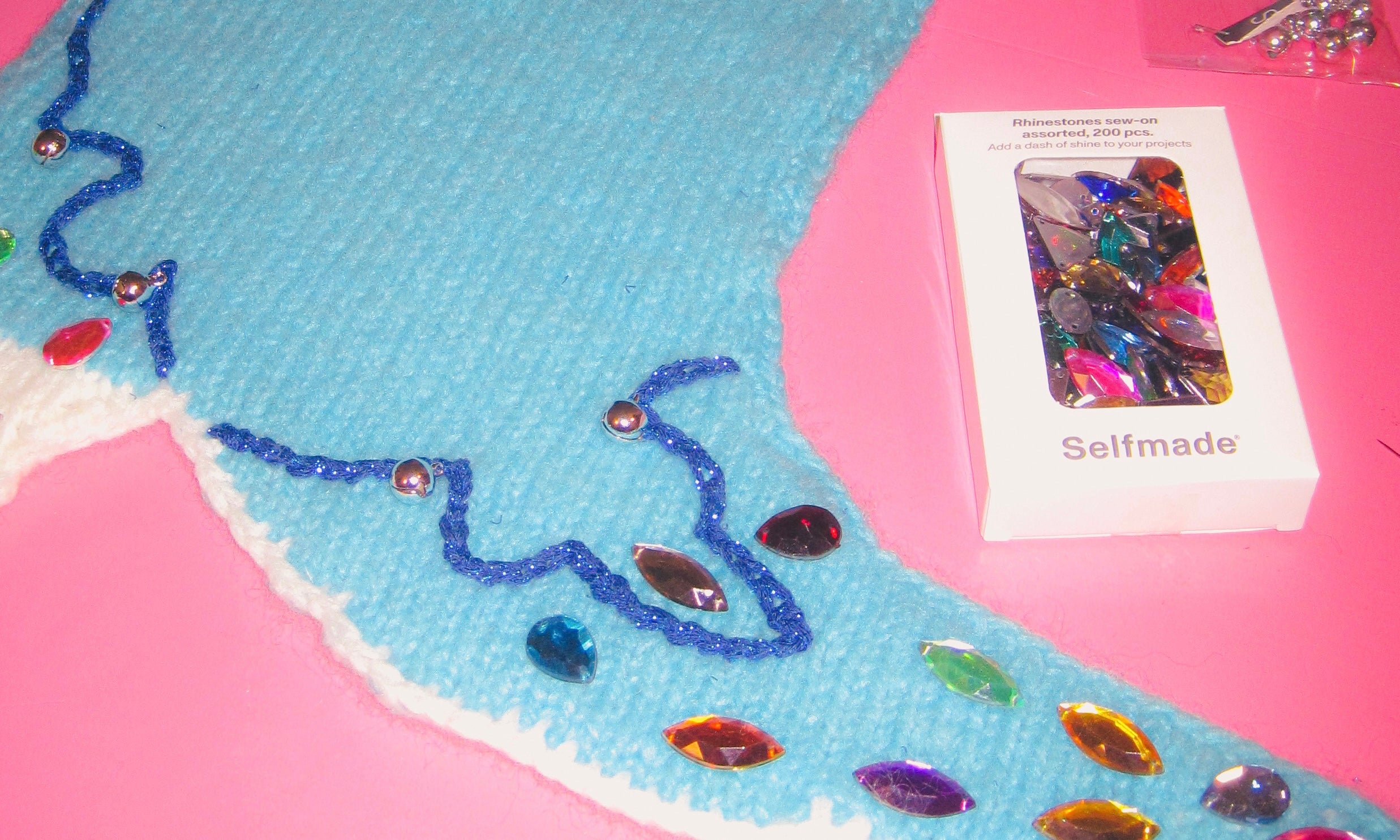 Broderi: Restegarn, broderigarn og/eller paljetter og perler.