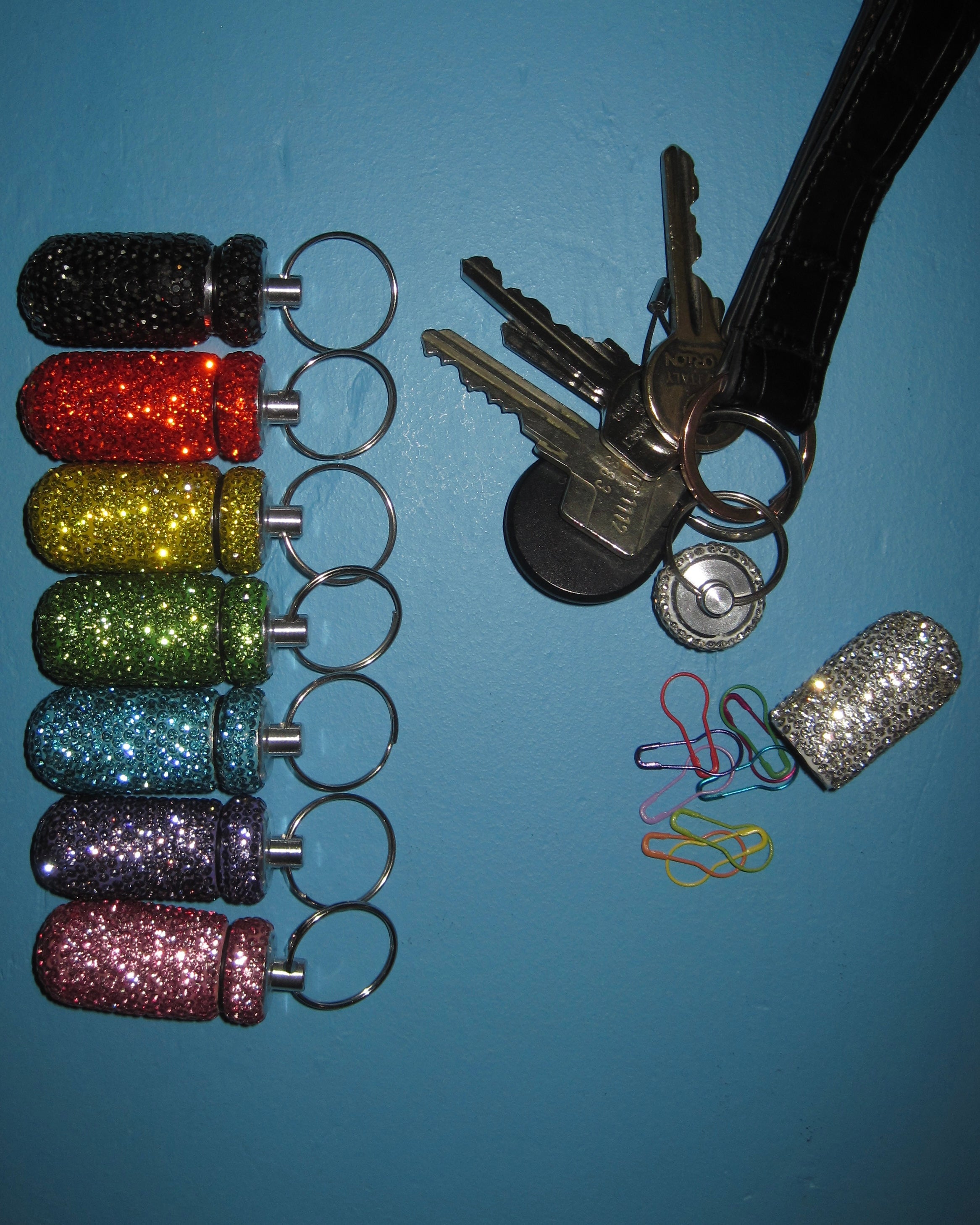 Introducing Bling Stitch: the perfect accessory for knitters and crocheters on the go. This compact, stylish container holds stitch markers and conveniently attaches to your keychain, ensuring you're never caught without a stitch marker when you need one. Keep your projects on track and add a touch of flair to your everyday carry with Bling Stitch.