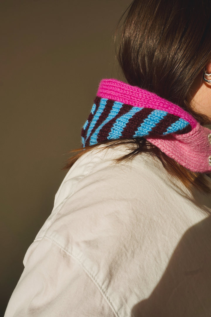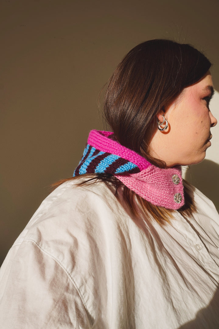 The mix of stripes, color blocking, and sparkling buttons gives it just the right balance of glam and playful rebellion. Wear it up as a full balaclava or folded down as a neckwarmer — either way, you’re serving looks and warmth.