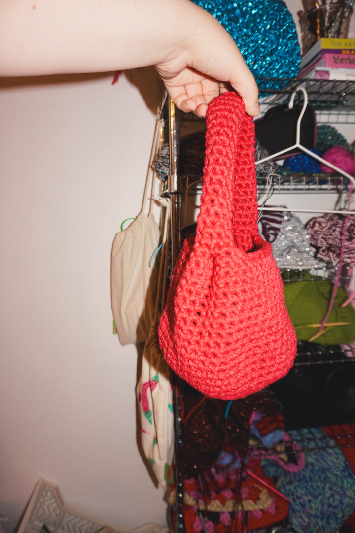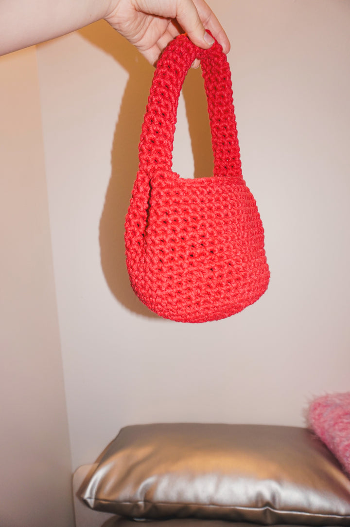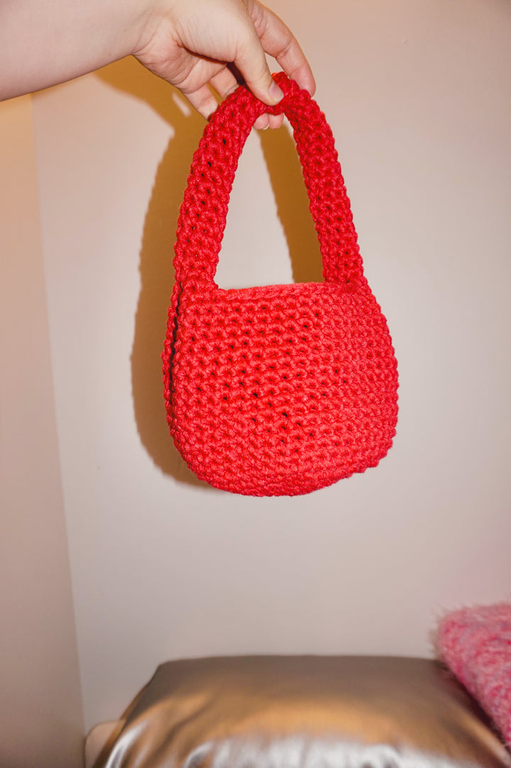 Crocheted bottom-up in chunky ribbon yarn, the Celine Bag is built entirely with single crochets for a clean, modern look. Starting from the base with increases, the body is worked in rounds until the perfect height is reached. The folded side handles are shaped and joined at the top, giving the bag its signature style and a sturdy finish.