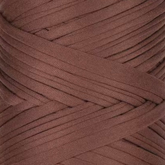 Gia T-SHIRT YARN is cut from fabric into bold, flat strands that create clean, graphic stitches with strong definition and a solid feel. It builds quickly on larger hooks, forming fabric that holds its shape and keeps its edge.