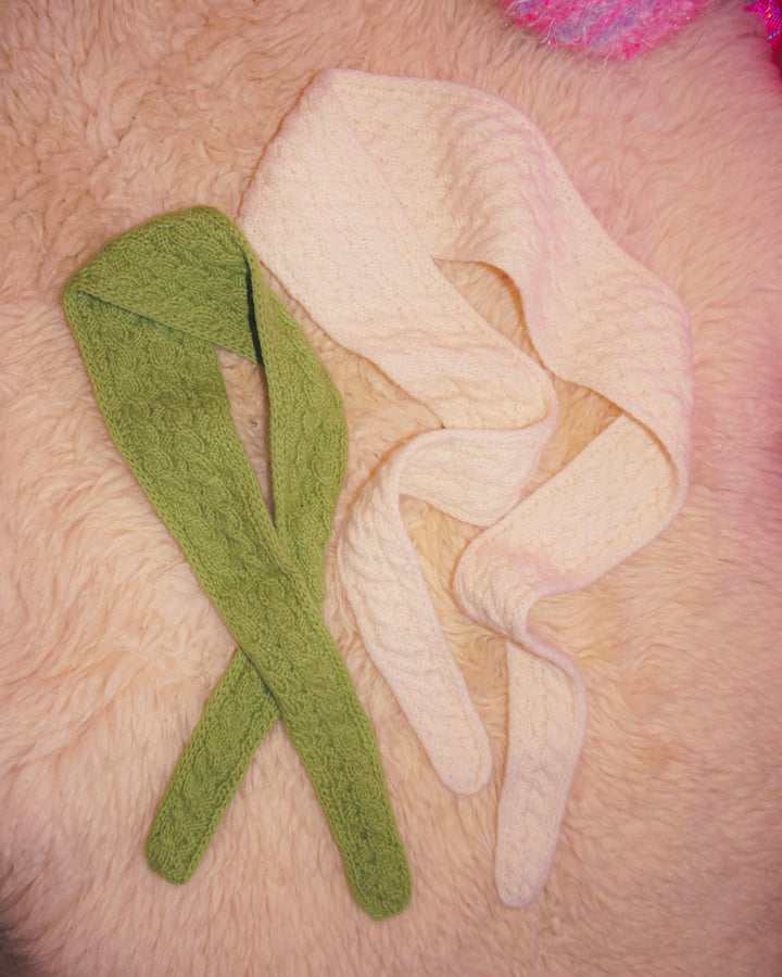 Meet the Margrethe Scarf — a dainty, elegant piece with just the right amount of detail and charm. Knitted from tip to tip, this scarf combines cableknit and ribbing, finished with polished i-cord edges for a refined look. Its delicate size allows it to be tied once or twice around your neck, making it the perfect accessory to elevate any outfit.