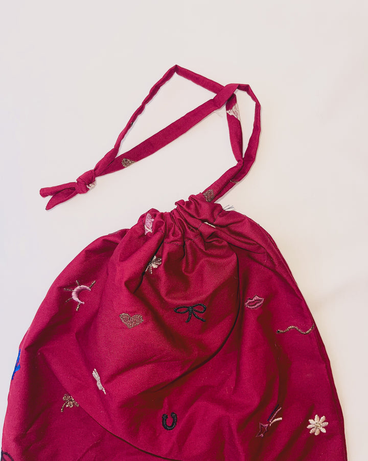 Each RTW String Bag is one of a kind – carefully handmade by me, using thoughtfully selected fabrics chosen to boost the ultimate knitting energy. These bags are designed to hold your knitting projects, yarn, or small essentials in the most beautiful way possible. Every piece is sewn with care and intention, combining function with a touch of everyday luxury.