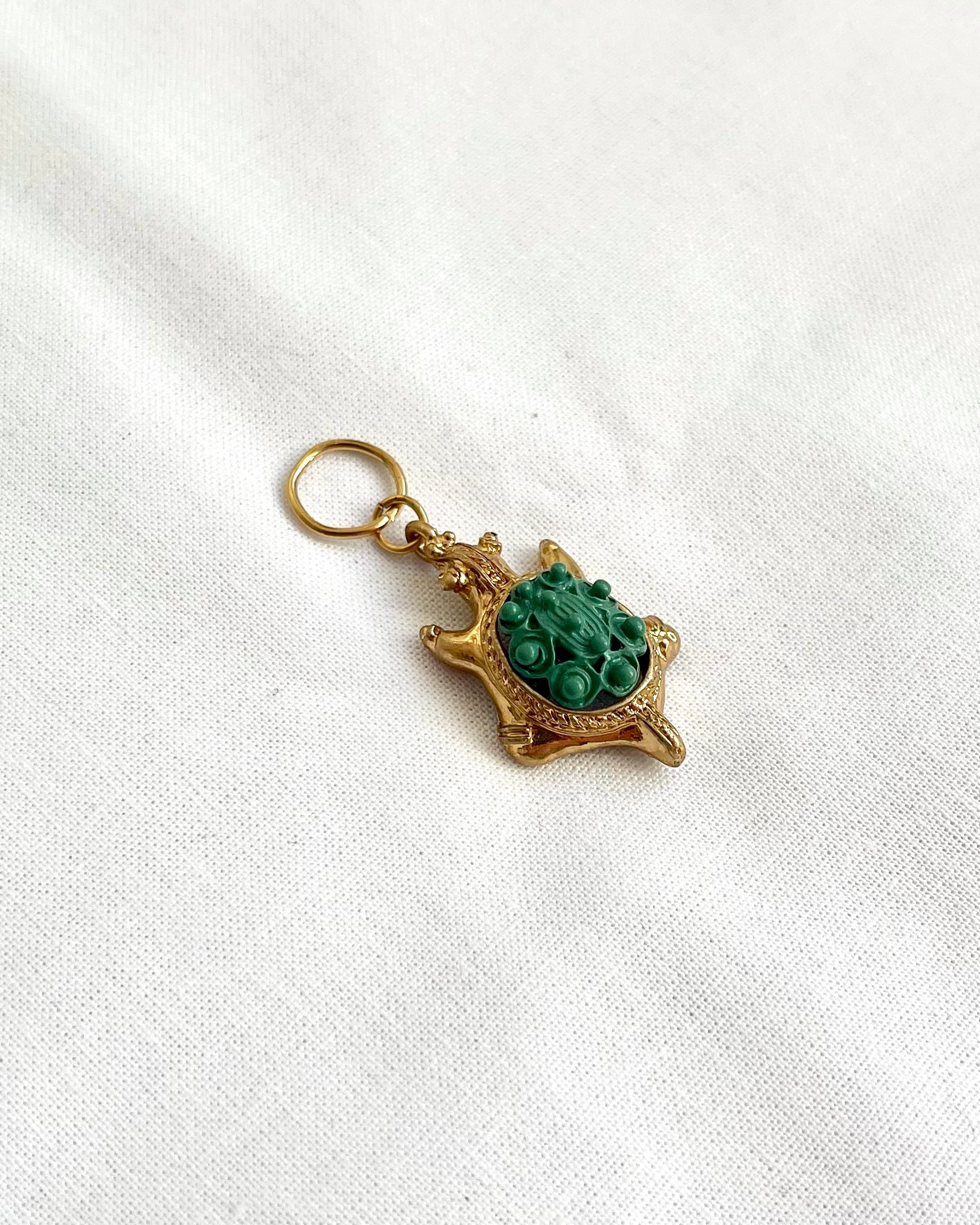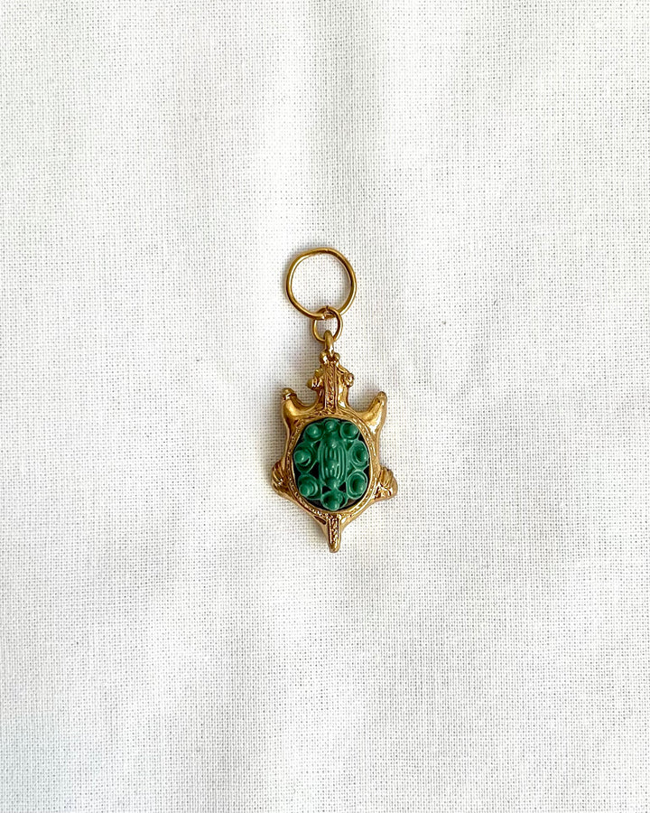 Tiny treasure, slow and steady. Treasure Turtle brings a little charm to your knitting with its golden frame and deep green shell. Inspired by vintage jewelry and ocean curiosities, it’s a small detail that feels both playful and precious.