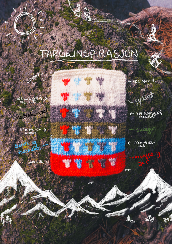 These mittens are inspired by our rich hiking tradition and honor the Norwegian outdoor lifestyle. Knit your own mittens and bring a piece of Norwegian nature on your adventures. The pattern combines timeless design with functionality, perfect for chilly days outdoors. Let yourself be inspired by Norwegian mountains, forests, and fjords as you knit these mittens.