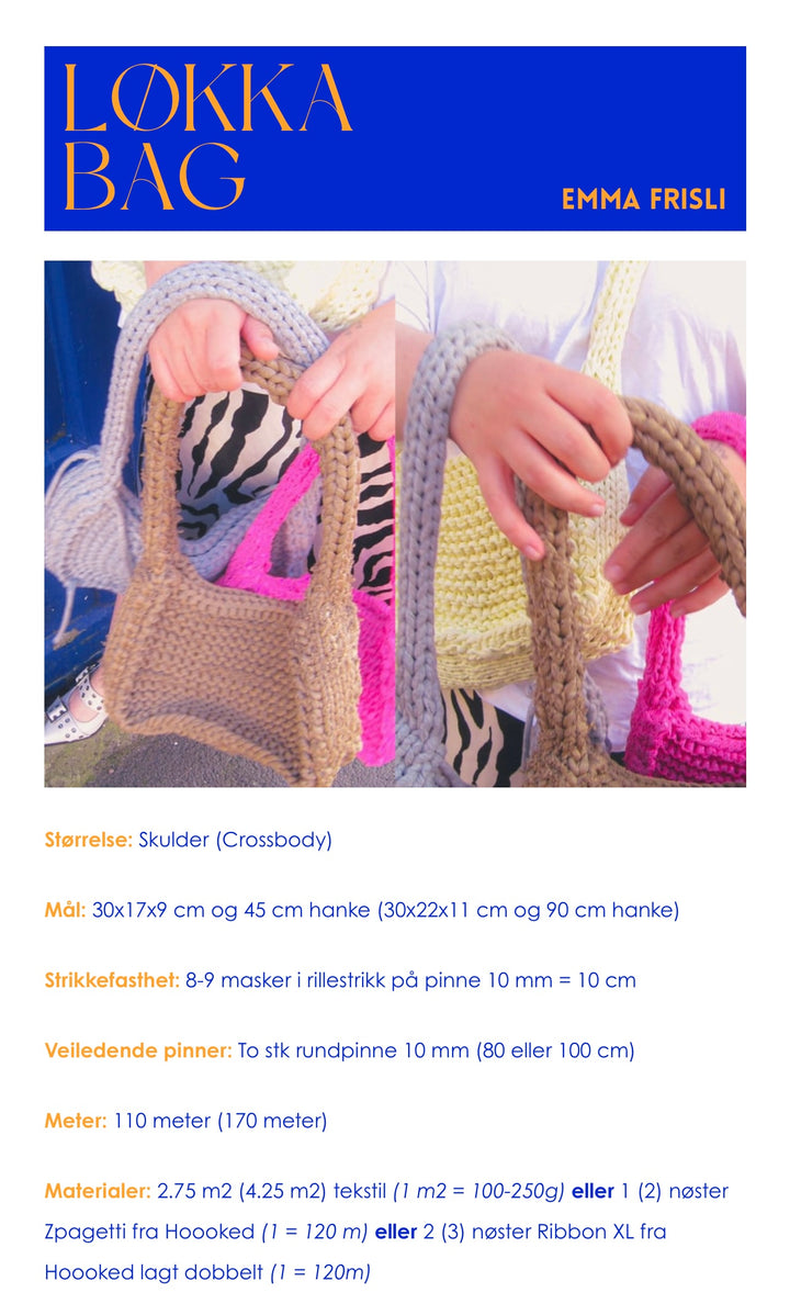 Knit your own versatile and eco-friendly Løkka Bag with this pattern! This chunky knit bag can be easily customized into a shoulder bag or a crossbody bag, making it a practical and stylish accessory.