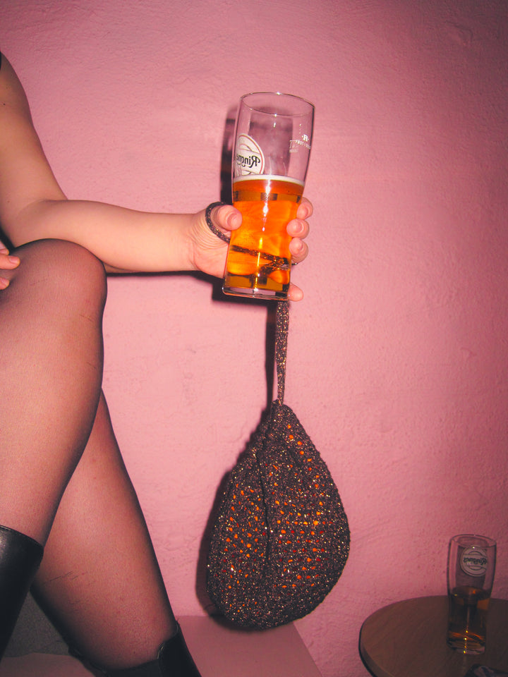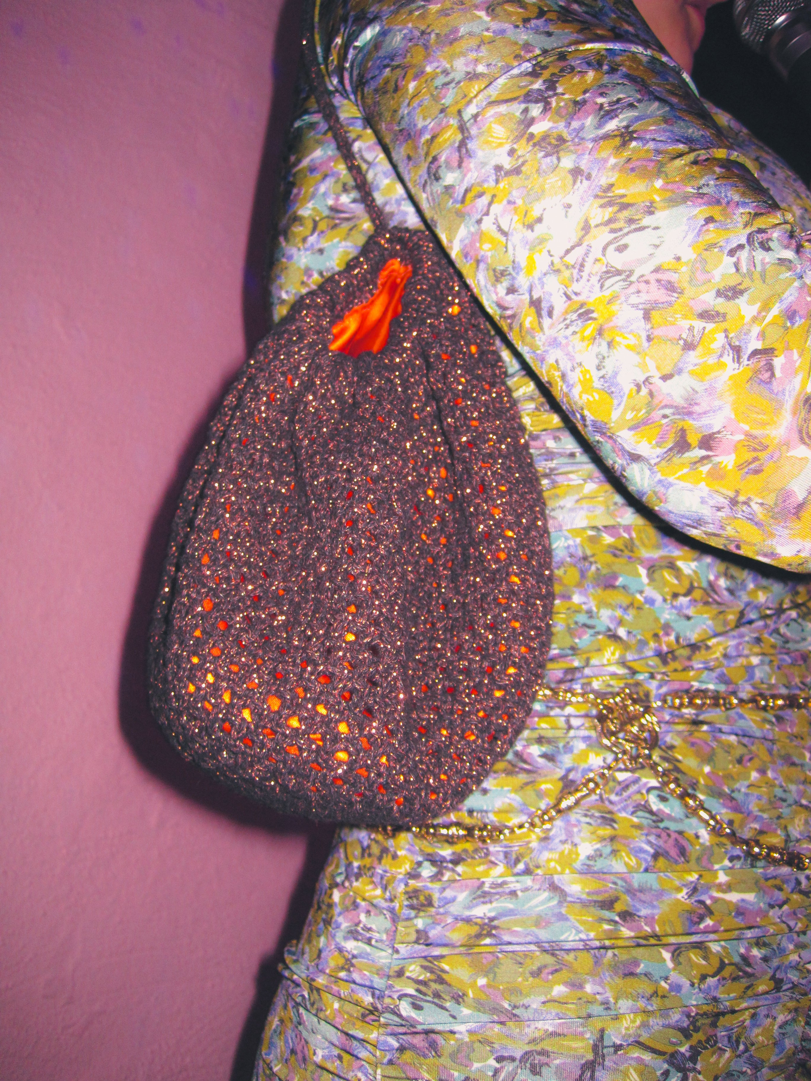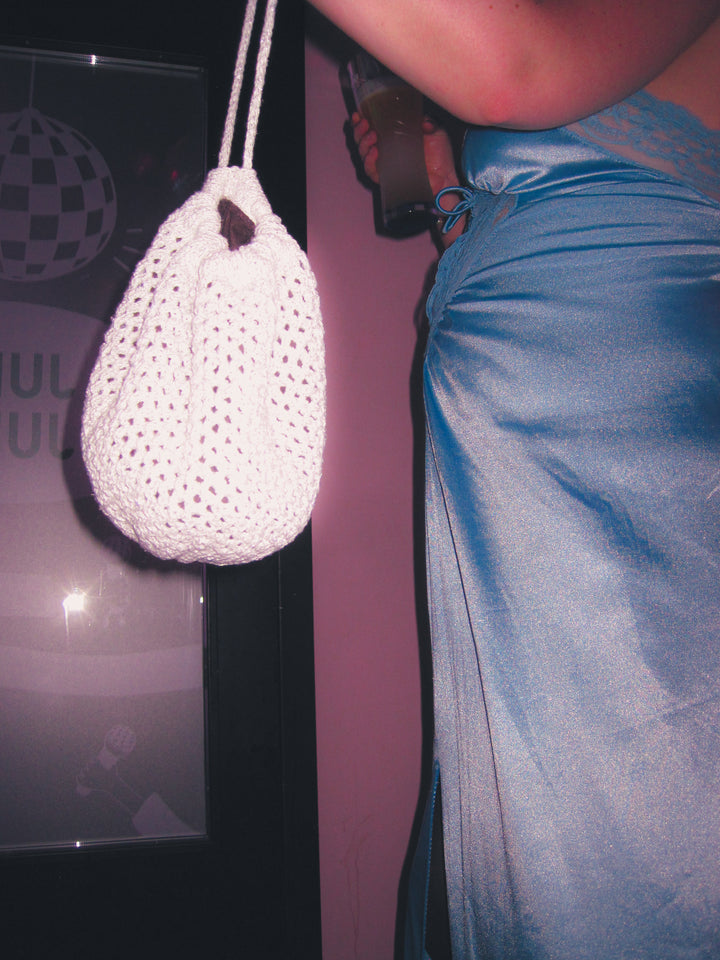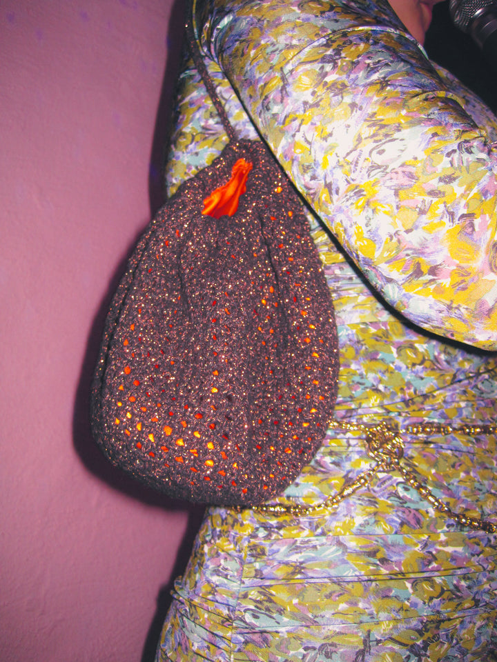Originally designed with glittery yarn, this pattern encourages creativity with limitless possibilities. The pouch features a seductive symmetric mesh structure that showcases intricate details beautifully. After knitting, add a double-sided satin lining that shines through the mesh, creating a dazzling effect reminiscent of a disco ball.