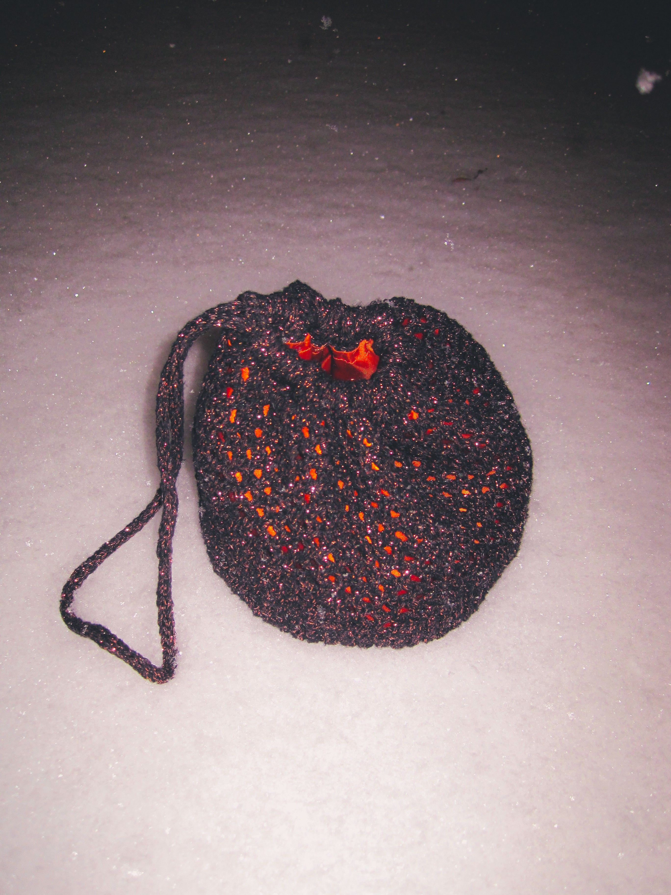 Introducing the Venus Pouch knitting pattern—a festive and elegant bag perfect for special events.