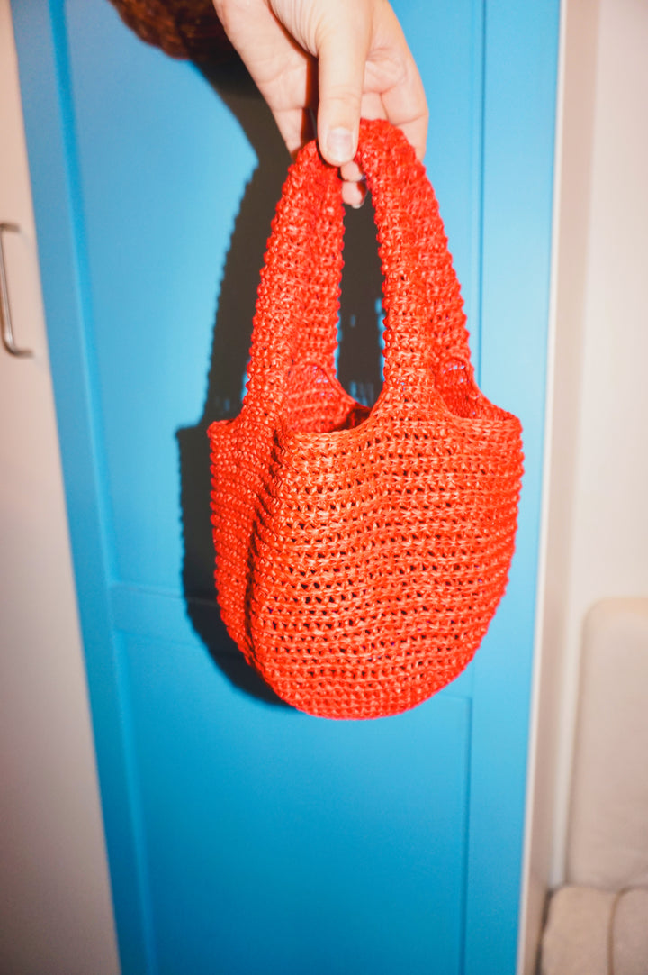 A timeless classic with a clean and minimal design. Crocheted bottom-up in raffia yarn, the Vita Bag is worked entirely in half double crochets to create that subtle textured detail wrapping around the bag.